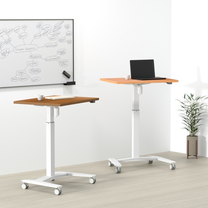 Dodatkowym atutem tego stelaża jest możliwość zamontowania kółek, co pozwala na łatwe przemieszczanie biurka z miejsca na miejsce, bez konieczności podnoszenia go.