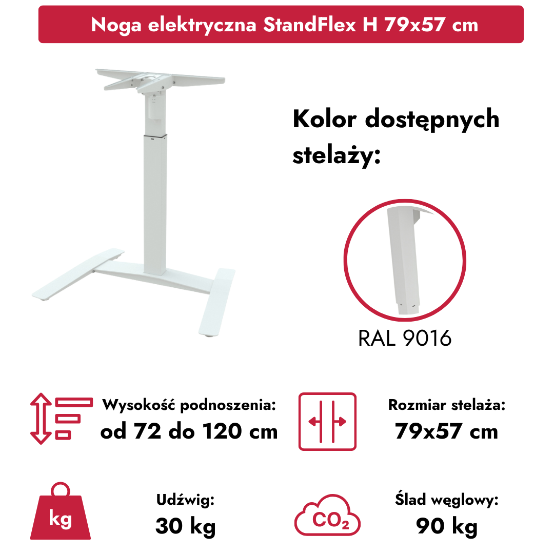 Specyfikacja techniczna nogi elektrycznej do biurka StandFlex H, 79x57 cm